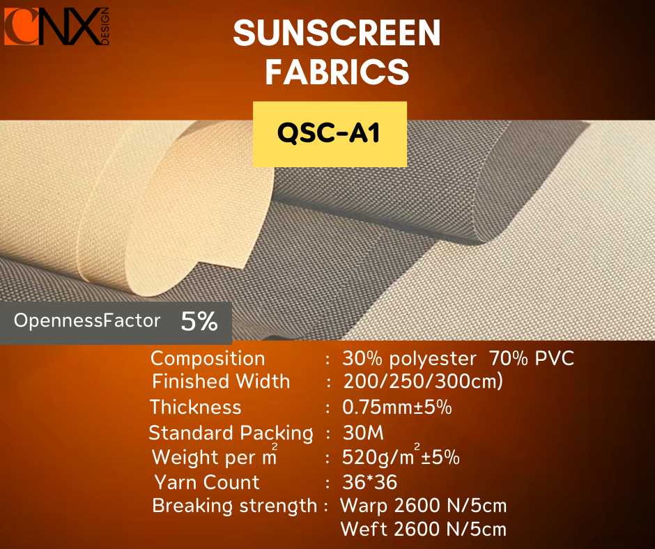 เป็นผ้ากรองแสง ที่มีช่องรู เล็กๆบนเนื้อผ้า ผลิตจากเส้นด้าย Polyester เคลือบด้วย PVC ช่วยป้องกันรังสี UV ทําให้แสงแดดสามารถผ่านเข้ามาได้เล็กน้อย ประมาณ 1-10 % ขึ้นอยู่กับ ความละเอียดของการทอผ้าแต่ละรุ่น เหมาะสําหรับนํามาตกแต่งห้องหรือ สถานที่ที่ต้องการมองเห็นวิวทิวทัศน์บริเวณภายนอก ห้องที่เหมาะกับผ้าม่าน ม้วนซันสกรีน เช่น ห้องอาหาร ออฟฟิศ รีสอร์ท ฯลฯ